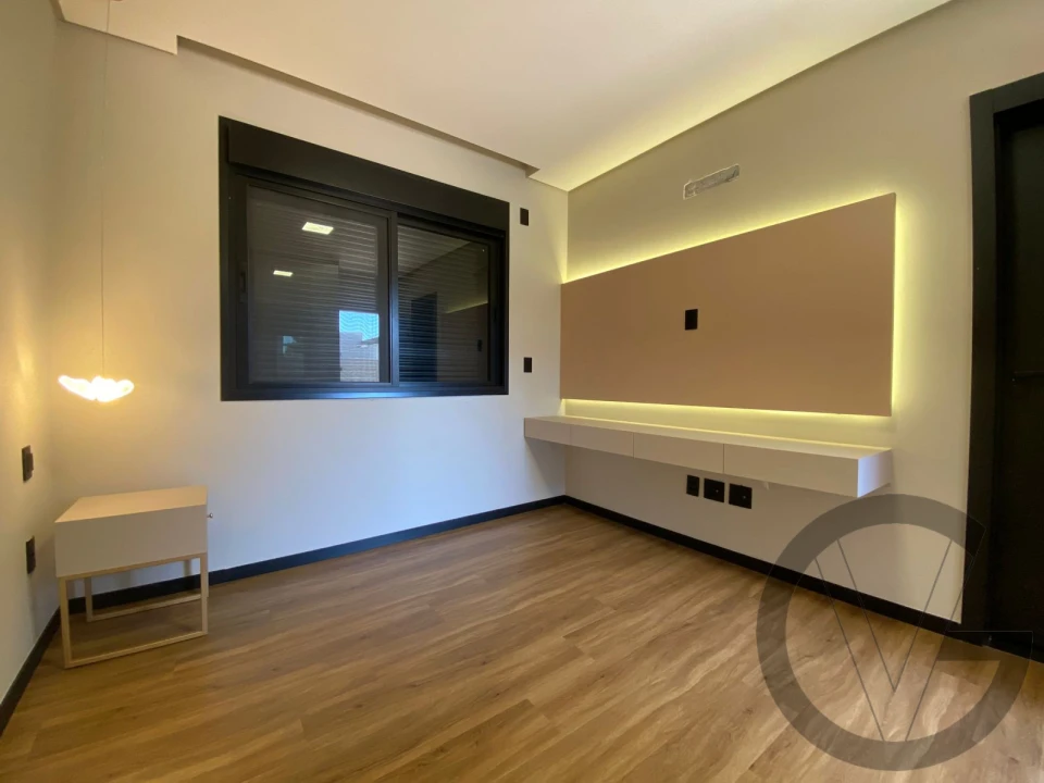 Residência moderna e bem distribuída, com três suítes, sendo a master completa, com amplo closet e área de banho. Conta com cozinha integrada, sala de jantar, home exclusivo e escritório na área íntima, além de roupeiro planejado no corredor.